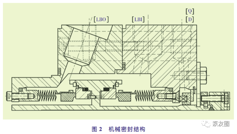 密封设计可以从密封布置方法、密封内件材料选择、密封冲洗液流量等方面入手。机械密封结构见图2。