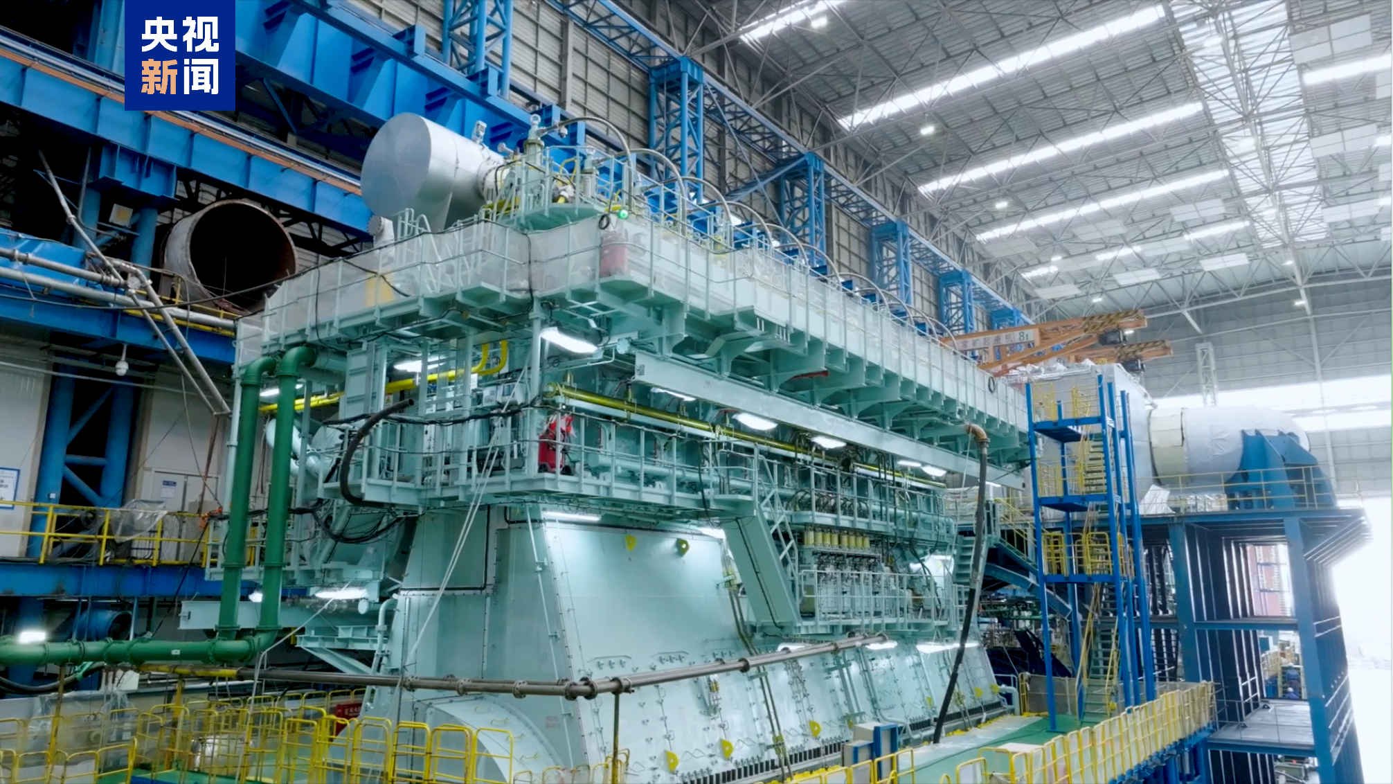 中船集团中船动力甲醇发动机项目经理 董晶瑾:打个比方,假如这台主机每年运行300天,那么它减排的碳排放量相当于72000辆普通家用燃油车一年的排放量。