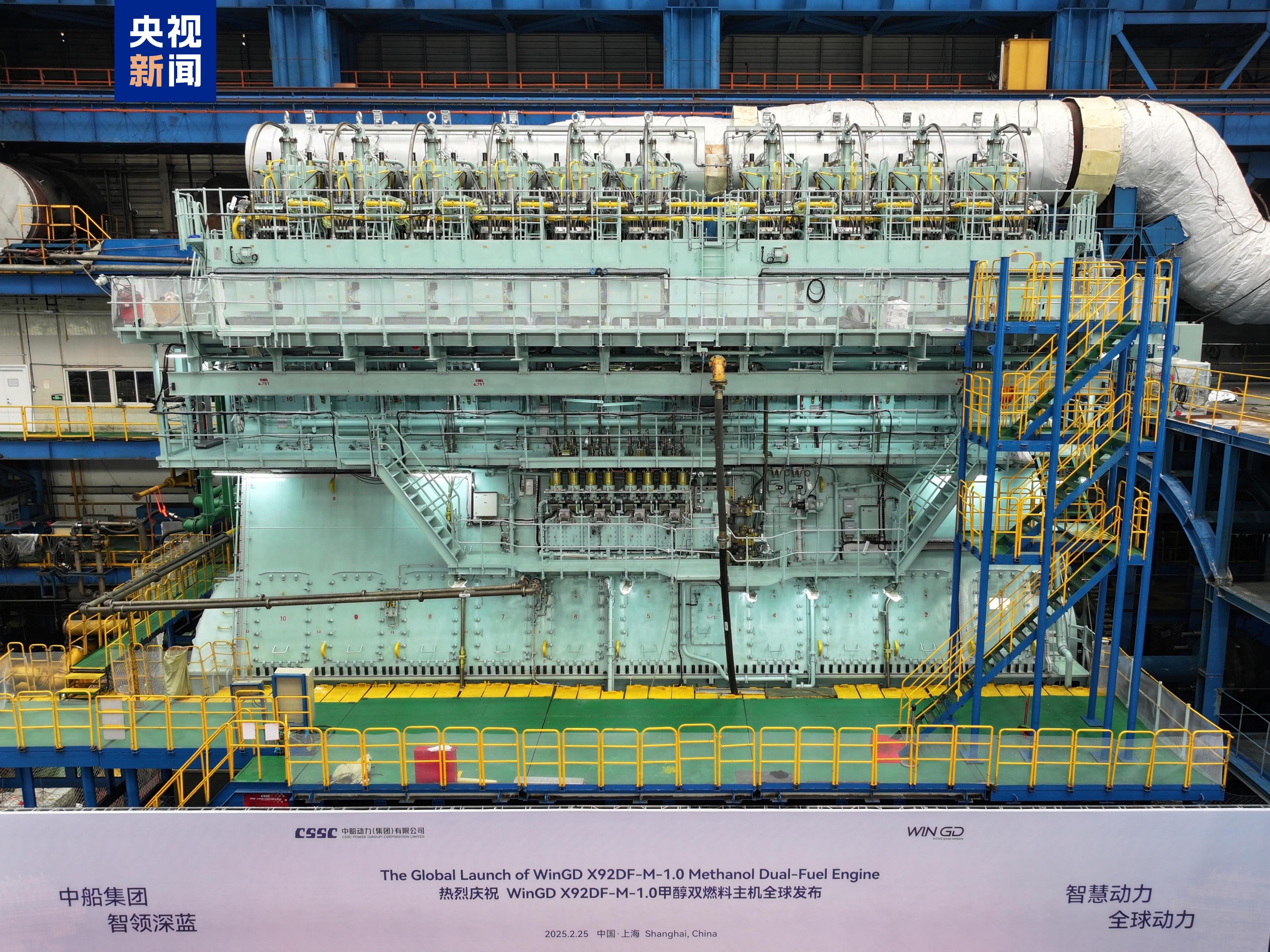 今天发布的全球最大功率甲醇双燃料发动机拥有完全自主知识产权,将工业酒精甲醇作为燃料,设计最大功率可达64500千瓦,重量达到1953吨,被称为船舶“心脏”中的巨无霸。同时,该型发动机采用先进的数字化智能控制系统,实现了甲醇替代传统柴油动力率超95%,减少二氧化碳排放超7.5%,在航运业绿色低碳转型下具有广阔的市场前景。